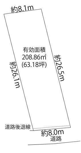 住宅用地、建築条件なし、現況渡し、上水道、下水道、土地面積はセットバック後の有効面積です。 |