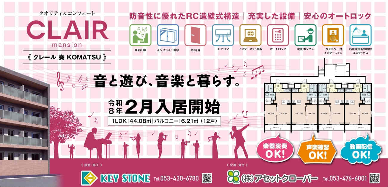 ☆2026年3月1日~入居開始予定1LDKマンション インターネット無料 楽器演奏可☆ LPガス、エントランスオートロック、宅配BOX、収納、バルコニー、駐輪場、シューズBOX、WIC、TVモニタホン、対面キッチン、追焚1坪バス、浴室乾燥、シャンプードレッサー、室内洗濯機置場、洗浄便座、エアコン、防犯カメラ、給湯リモコン、EV電源有り、バイク駐輪可、インプラス二重窓、防音扉 期間内違約金1ヶ月 解約予告違約金1ヶ月 |